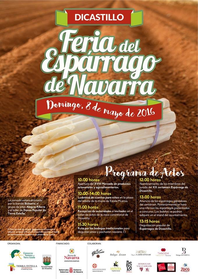 Como todos los años el pueblo de Dicastillo, celebra "La Feria del Esparrago de Navarra”, que este año 2016, cumplirá si xx edición, y se celebrará el próximo domingo 8 de Mayo.